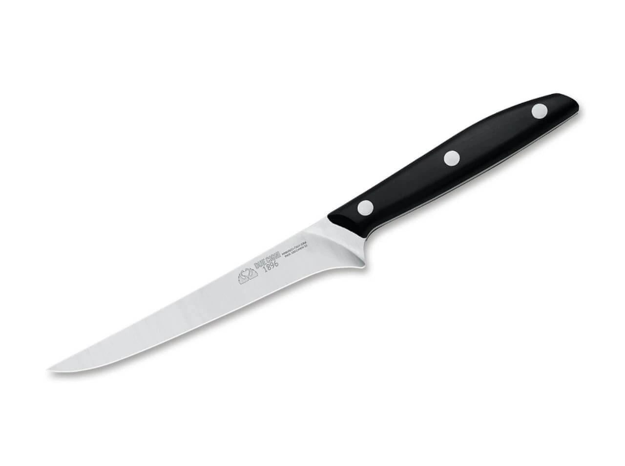 Mit der Serie 1896 stellt Due Cigni eine besonders hochwertige Küchenmesserserie vor, die das Sortiment des Herstellers aus der traditionellen Messerstadt Maniago krönt. Mit Griffen aus widerstandsfähigem POM liegen die Messer ausgezeichnet in der Hand, wobei die klassische Vernietung die optische und haptische Balance perfektioniert. Für die Klingen kommt der bewährte X50CrMoV15 zum Einsatz, der Schnitthaltigkeit und Korrosionresistenz perfekt vereint.