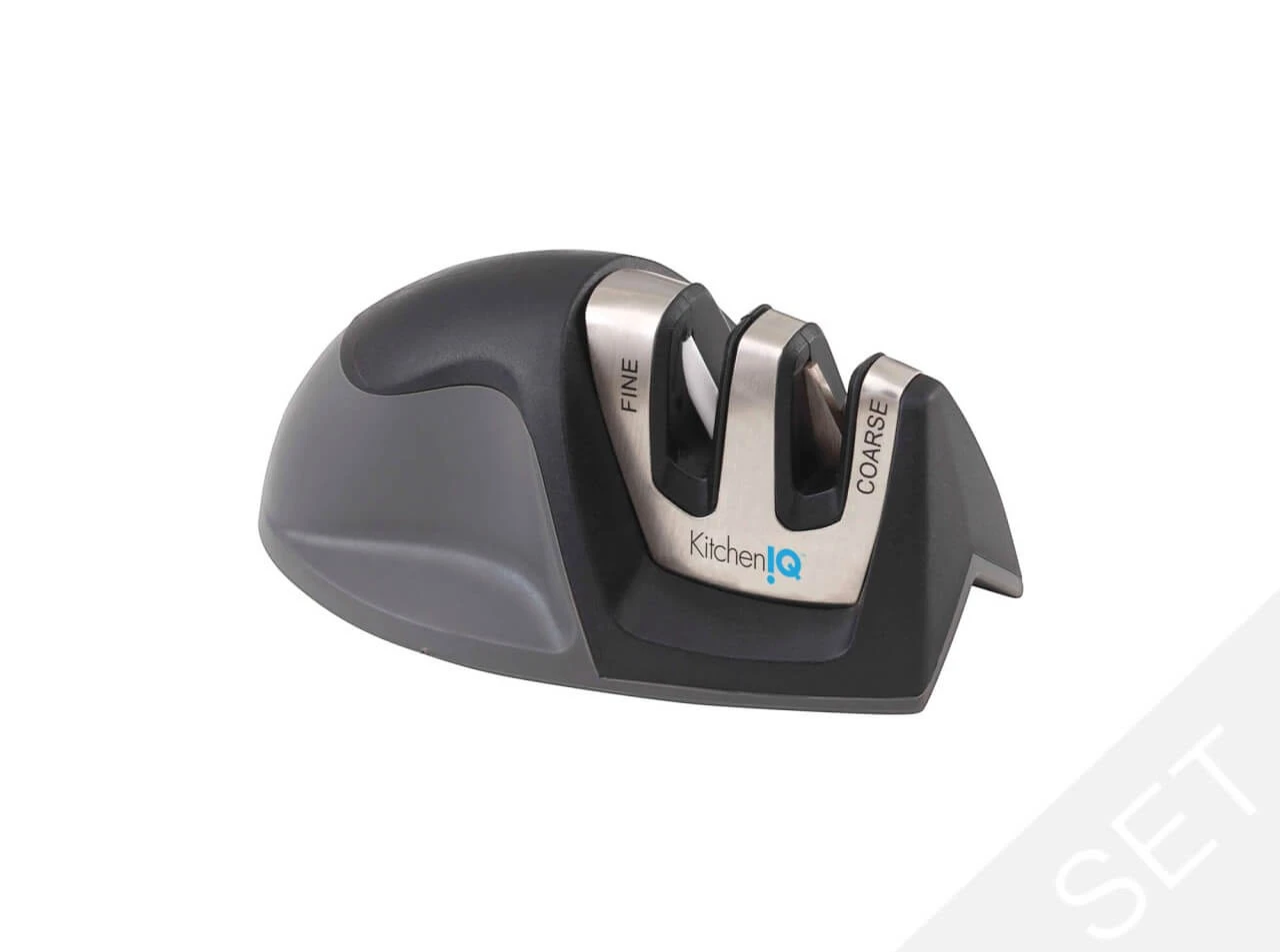 Der Edge Grip Zweistufenschärfer ist leichtgewichtig, transportabel und kann einfach auf jeder glatten Oberfläche oder an einer Tischkante eingesetzt werden. Carbideinsätze und gekreuzt montierte Ceramic-Schleifeinsätze bieten mit dem fest vorgegebenen Schleifwinkel eine hohe Bediensicherheit und liefern auch ohne Vorkenntnisse gleichbleibend gute Ergebnisse. Während die gröberen Carbideinsätze für die schnelle Wiederherstellung der Schneidengeometrie sorgen, sind die feinen Ceramiceinsätze für den anschließenden Feinabzug oder für das schnelle „Auffrischen“ der Schärfe zwischendurch zuständig. Diese Kombination ermöglicht es Ihnen, jeder Klinge ihre maximale Schärfe zu geben und auch zu halten. Der ergonomisch geformte Schärfer verfügt über rutschfeste Gummifüße und einen gummierten Haltegriff für komfortables und sicheres Arbeiten. Der V-förmige Unterbau ermöglicht auch das Schärfen an einer Tischkante. Maße – Länge: 9,5 cm , Tiefe: 5 cm, Höhe: 4,5 cm