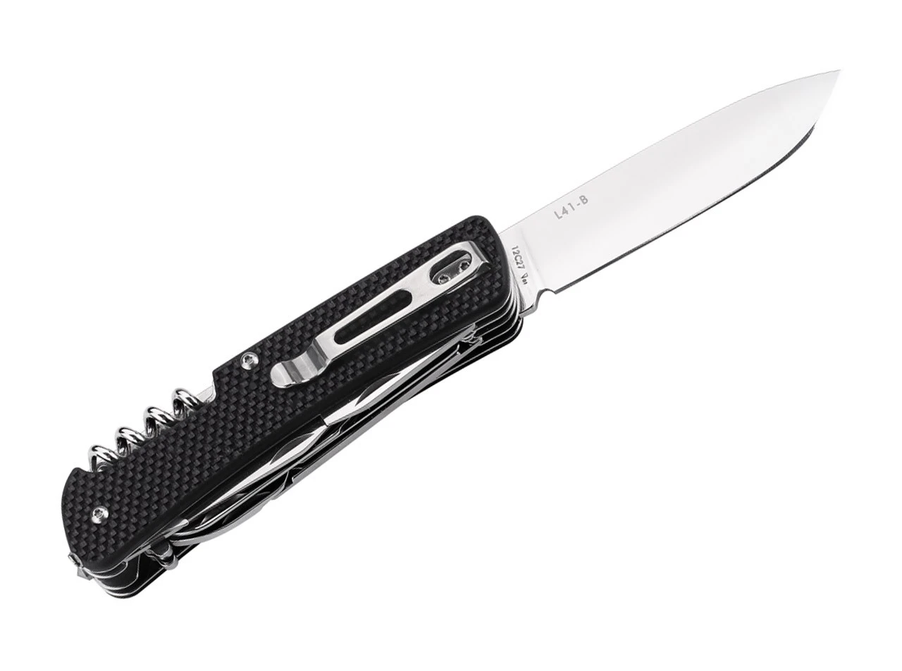 Mit großer Klinge und robusten Werkzeugen ist die Ruike L-Serie für alle Arten von Outdoor-Aktivitäten und den Notfallgebrauch geeignet. Die 8,5 cm lange polierte Klinge aus Sandvik 12C27 Edelstahl weist eine erweiterte Stärke und Breite auf und erreicht so eine längere Lebensdauer und vielseitigere Einsatzmöglichkeiten. Der Griff aus schwarzem strukturiertem G10 liegt sicher und angenehm in der Hand und ist ideal für eine jahrelange Benutzung. Zusätzlich verfügt es über einen Korkenzieher, Dosenöffner, Schraubendreher, Schaber, Flaschenöffner, Drahtschneider, Drahtabisolierer, kleinen Schraubendreher, Schneidhaken, Kreuzkopf-Schraubendreher, Drahtbieger, einer Pinzette, Schere, Zange, Ahle und Säge. Der Glasbrecher aus Wolframstahl ermöglicht dem Nutzer Glas oder andere robuste Materialien zu zerbrechen. Geöffnet wird das Messer per Nagelhau und gehalten wird es mit Hilfe eines Slipjoints. Mit Öse, Schlüsselring und Tip-down Clip.