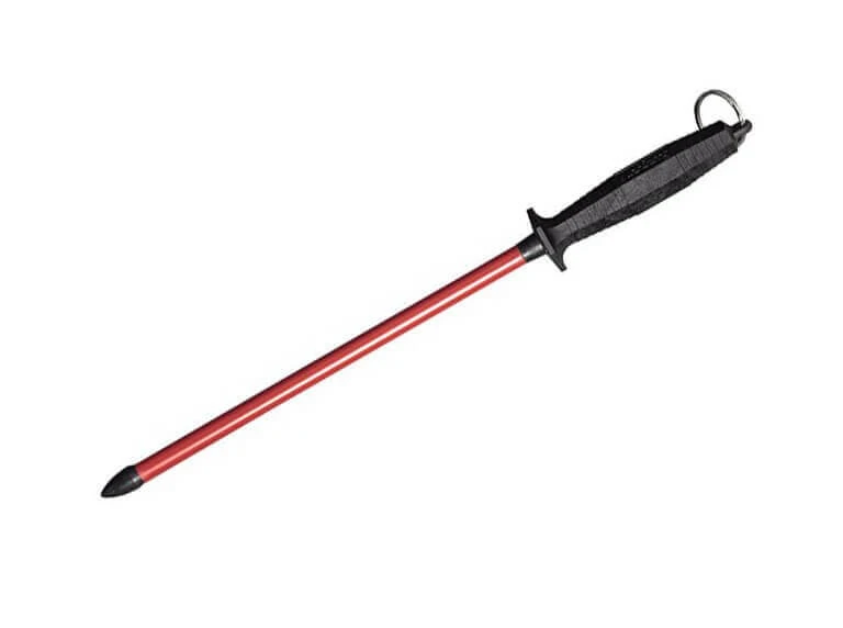 Der Sieger Long Life Messerschärfer aus synthetischem Rubin ist 20 mal härter als gehärteter Stahl (20.000 Knoop entspricht ca. 200 HRC). Das ungewöhnliche an diesem Schärfer ist die hohe Effektivität, also der geringer Zeitaufwand beim Schärfen in Kombination mit einem ungewöhnlich feinen Resultat, was sich vor allem an der hohen Standzeit der Schneide zeigt. Zudem ist der Schärfer langlebiger als zum Beispiel ein Diamantschärfer, da es sich hier nicht um eine Beschichtung sondern um Vollmaterial handelt. Der Messerschärfer kann trocken oder nass verwendet werden. Nach Gebrauch einfach mit einem Spülschwamm reinigen. Das Schleifrohr ist 28 cm lang.