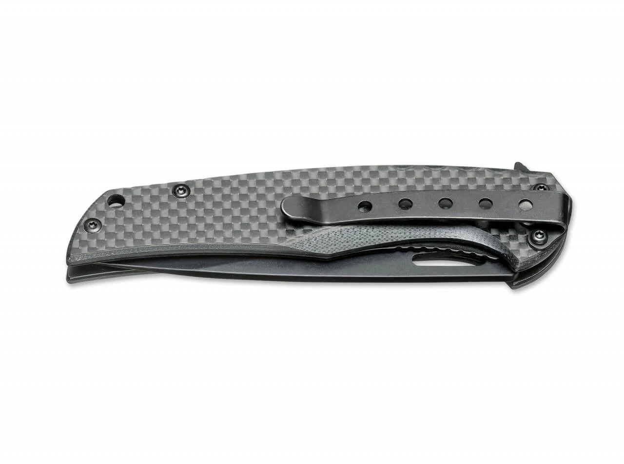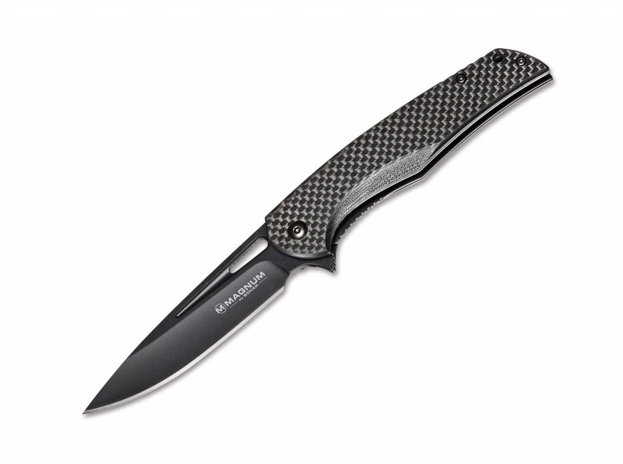 Zurückhaltung und Understatement sind hier Programm. Die geschwärzte Klinge aus 440A Stahl wird durch den Flipper geöffnet und durch den Linerlock gesichert. Die dunklen Griffschalen aus echter Kohlefaser werten das Messer auf und halten das Gewicht niedrig. Mit Fangriemennöse und Clip.