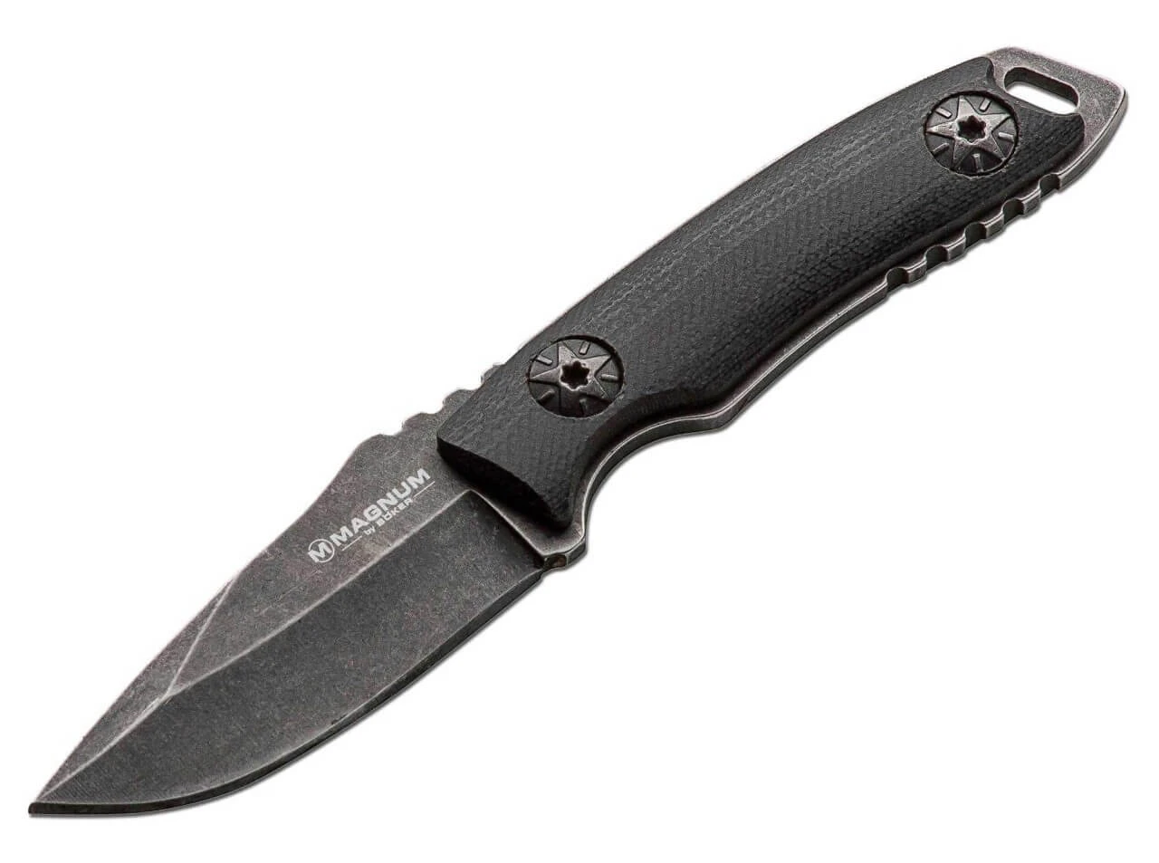Das Magnum Li’l Friend ist ein leichtes, scharfes und ungemein vielseitiges Neck Knife. Die scharfe Klinge aus 440A öffnen Verpackungen, trennt Packbänder durch und schneidet Gewebeklebeband mit Leichtigkeit. Die Vielseitigkeit des Messers bezieht sich jedoch nicht nur auf die Funktion, sondern auch auf die Tragemöglichkeiten. In der Hosentasche, mit der Kugelkette um den Hals, an der Ausrüstung befestigt oder selbst am Gürtel kann das Li’l Friend getragen werden. Ein kleines, fast winziges Messer, das dennoch nicht unterschätzt werden sollte. Die Clip-Point Klinge wurde harmonisch mit einem schwarzen G10-Griff kombiniert.