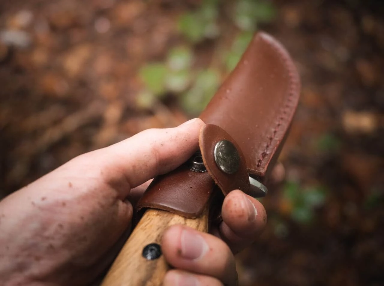 Das Magnum Zebra Drop ist ein formschönes Fahrtenmesser, das mit Griffschalen aus handverlesenem Zebranoholz beeindruckt. Die wunderschöne Maserung des witterungsfesten Holzes wird durch die tiefbraunen Adern zusätzlich betont. Die leicht modifizierte Droppoint-Klinge aus rostfreiem 440A reicht von der Spitze bis zum Griffende durch das gesamte Messer und bietet so enorme Stabilität. Der ausgeprägte Handschutz gewährleistet einen sicheren Einsatz. Mit Fangriemenöse und Gürtelscheide aus Leder mit Druckknopfsicherung.