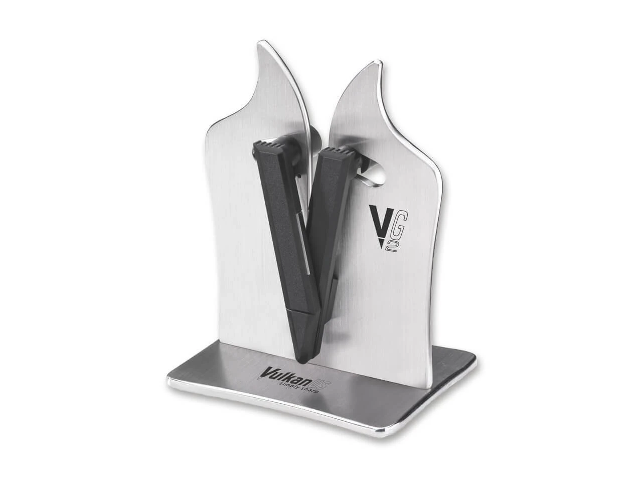 Mit dem Vulkanus Generation 2 wurde die Leistungsfähigkeit des bewährten Schärfers noch weiter optimiert. So wurden die Schärfeinsätze in Material und Form überarbeitet, sodass ihre Lebensdauer um ein Dreifaches erhöht und das Schärfergebnis verfeinert werden konnte. Der Schärfwinkel wurde auf einen Umfang von 11° bis 21° erweitert. Ein oben verbreiterter Schärfschacht erleichtert das Ansetzen der Messer. Der Stabfedern sind bei der neuen Generation verdeckt und ihre Andruckkraft wurde wesentlich erhöht. Daneben sind die Schärfelemente im Bedarfsfall nun deutlich leichter auszutauschen. Mit Edelstahlgehäuse.