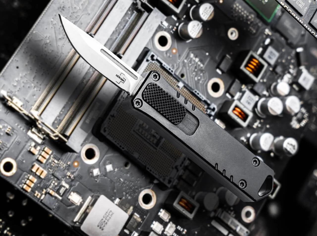Das kleine Genie zitiert als handliches Automatikmesser das charakteristische Design gängiger USB-Sticks und setzt auf Biss statt Bytes: Kartons, Verpackungen oder Seile werden mühelos von der schnitthaltigen Klinge aus D2 durchtrennt. Das Springmesser verfügt über einen Schieber auf der Vorderseite des Griffs, der die Klinge mit einem energischen Klacken pfeilschnell aus dem Griff hervorkommen- und bei erneutem Betätigen wieder diskret verschwinden lässt. Dank dieser praktischen Einhandbedienung werden kleine Schneidarbeiten des Alltags nahezu im Handumdrehen erledigt. Optisch harmoniert das elegante Satin-Finish der Klinge perfekt mit dem schwarzen Griff aus CNC-gefrästem 6061-T6 Aluminium und dem kernigen Tip-Down (r) Clip. Dank der Fangriemenöse kann das Messer auch ideal am Schlüsselbund getragen werden. Weg vom Computer, hinein ins Alltagsabenteuer – noch nie hat USB so viel Spaß gemacht!