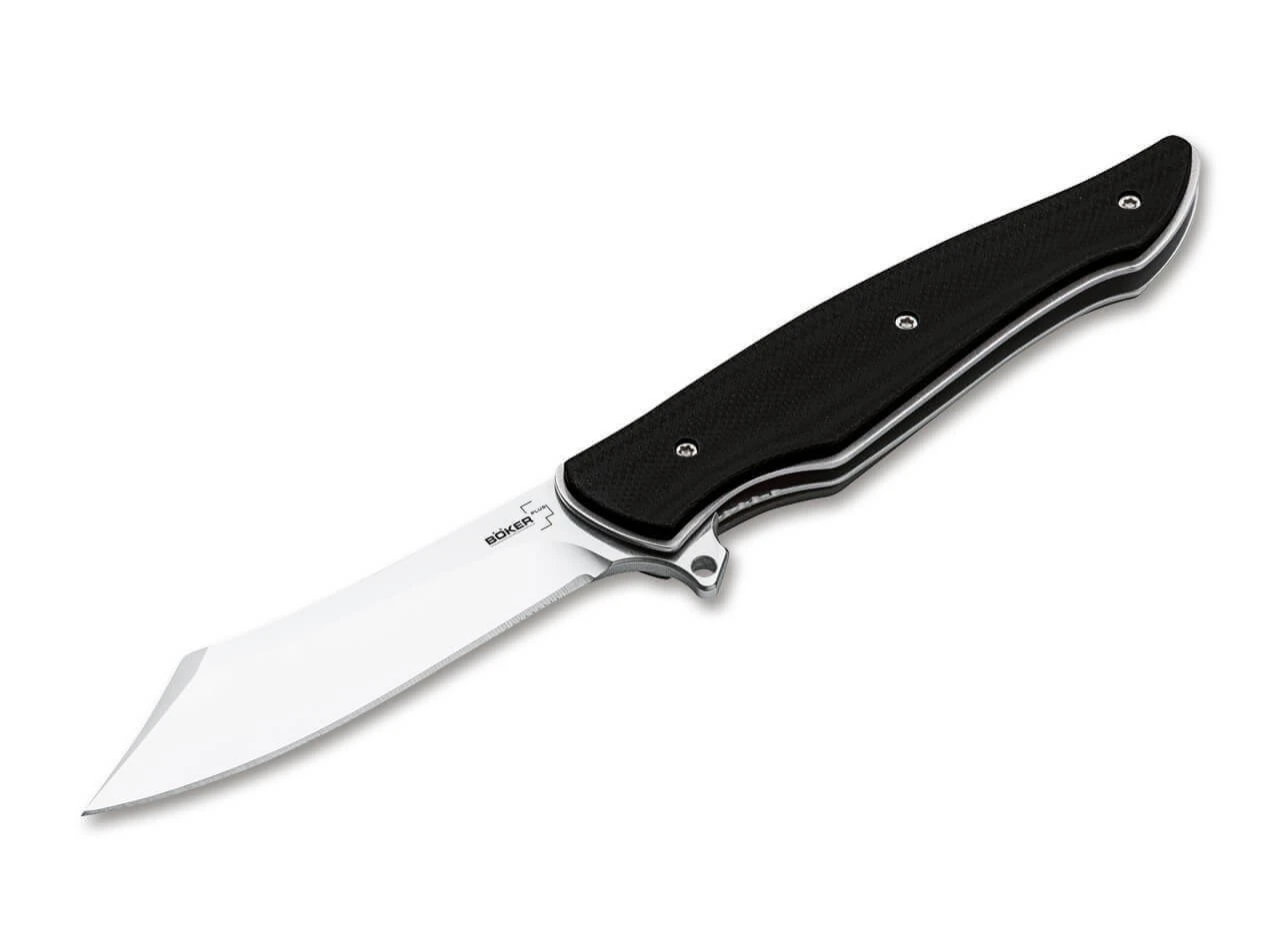 Das mit einer ungewöhnlichen Klinge aus 9Cr13CoMoV ausgestattete Böker Plus Obscura erinnert an einen orientalischen Säbel aus der Zeit der Sarazenen. Die über viele Jahrhunderte genutzten Krummschwerter waren im Mittleren Osten sowie in Nordafrika und Vorderindien weit verbreitet und kamen mit den osmanischen Eroberern sogar bis nach Ungarn. Die modifizierte Drop-Point-Klinge des handlichen Taschenmessers wird per Flipper geöffnet und von einem stabilen Linerlock arretiert. Die schwarzen Griffschalen aus texturiertem G10 liegen rutschsicher in der Hand. Mit Clip (Tip-up) und hochwertigem Nylon-Etui zur Aufbewahrung.