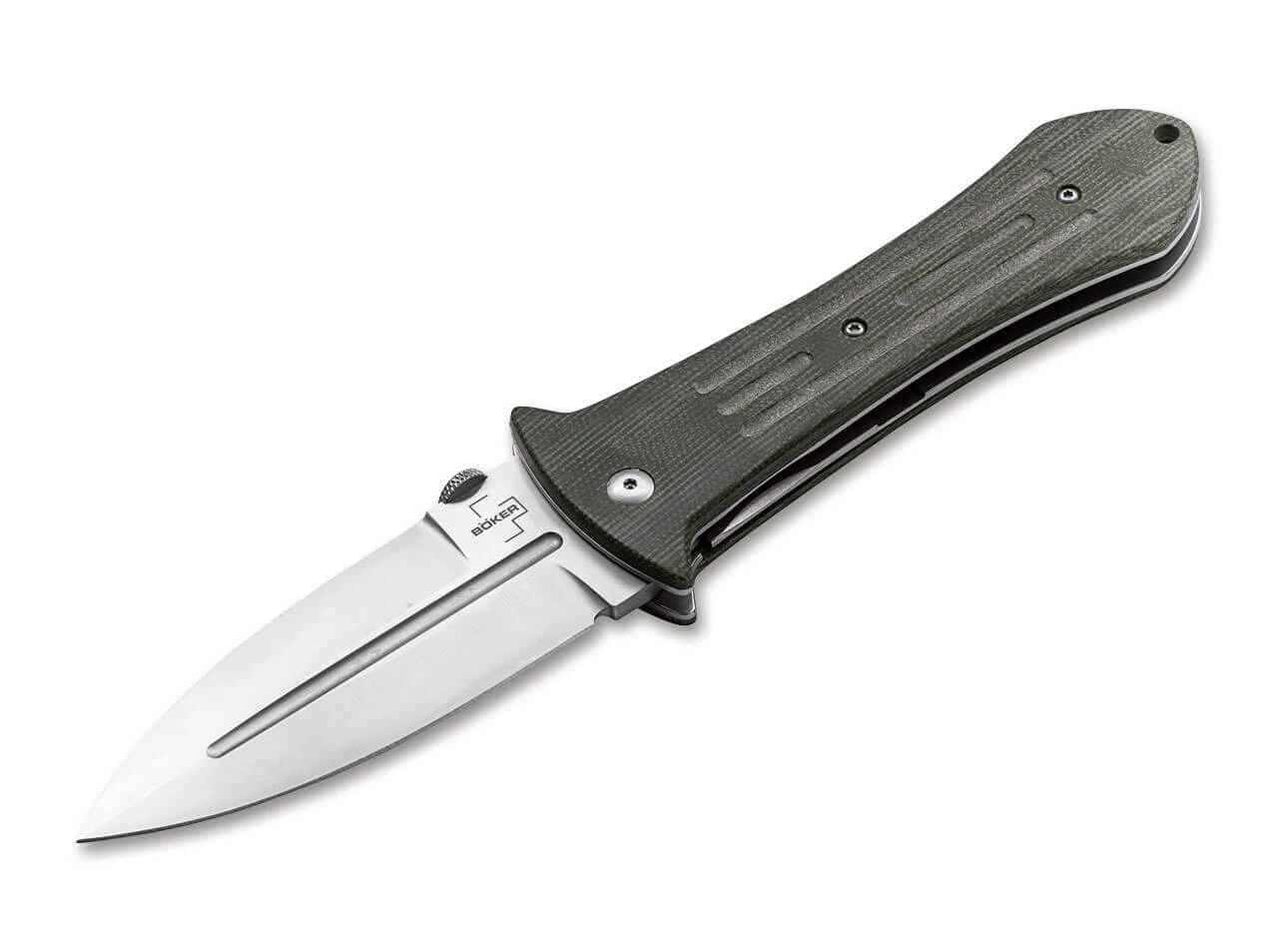 Das robuste Pocket Smatchet ist mit einer blattförmigen Spearpoint-Klinge aus VG-10 ausgestattet, die mit einem widerstandsfähigem Stonewash-Finish versehen ist. Der demontierbare Daumenpin auf dem Klingenrücken erlaubt das beidhändige Öffnen der Klinge, während ein stabiler Linerlock sie zuverlässig arretiert. Die dekorative Hohlkehle setzt sich auf den rutschfesten Griffschalen aus grünem Canvas Micarta fort, die dank der feinen Texturierung besonders sicher in der Hand liegen. Der stabile Clip (Tip-up/r) wird aus dem Vollen gefräst und ist ebenfalls mit den charakteristischen Vertiefungen des klassischen Smatchets versehen. Mit Fangriemenöse und hochwertigen Nylon-Etui zur Aufbewahrung.