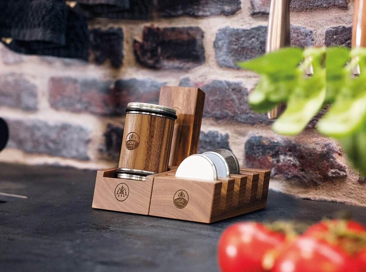 Die perfekte Aufbewahrung für bis zu vier HORL Schleifscheiben. Gefertigt in Deutschland aus massiven Eichenholz.