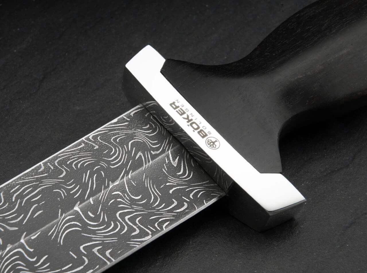 Die speziell für dieses Modell entworfene und von Hand genähte, verzierte Lederscheide unterstreicht die Exklusivität des begehrten Sammlerstücks. Die Auslieferung erfolgt mit individueller Seriennummer in einer edlen Holzschatulle und mit Echtheitszertifikat. Handgefertigt in der Böker Messer-Manufaktur Solingen und weltweit streng auf 500 Exemplare limitiert.