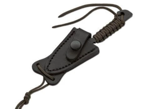 Das TOPS Hoffman Harpoon Mini ist ein innovatives Survival-Messer mit der Klingenform einer Harpune. Trotz der außergewöhnlichen Form kann das Neck Knife multifunktional als Speer, Pfeil, Harpune und eben als Schneidwerkzeug eingesetzt werden. Der kordelumwickelte Griff aus 1095 Kohlenstoffstahl kann komfortabel gegriffen werden. Mit praktischer Lederscheide, um das Messer um den Hals zu tragen.