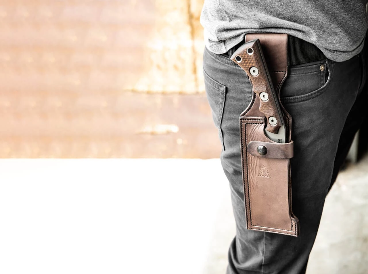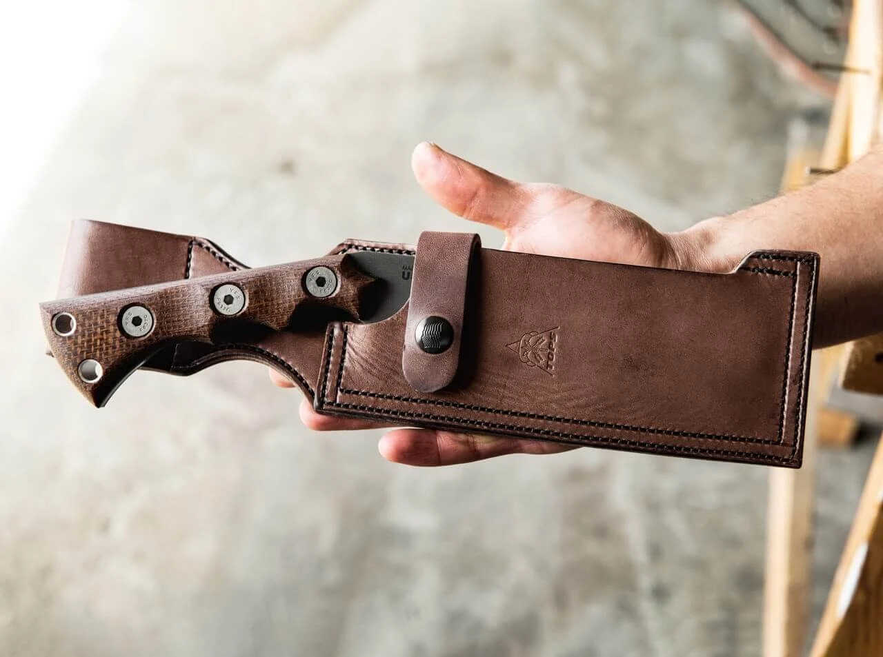 Das von japanischen Haumessern inspirierte TOPS Nata ist ein eindrucksvolles Outdoormesser, das auch als kurze Machete eingesetzt werden kann. Die massive, gradlinige Klinge wird aus 1095er Kohlenstoffstahl gefertigt und ist mit einem dunklen Acid-Rain-Finish versehen. Sie ist beeindruckende 6 Millimeter stark, wird auf 56-58 HRC gehärtet und eignet sich durch ihre extreme Stabilität auch als hochwertiges Gartenwerkzeug. Der leicht angewinkelte Griff aus braunem Micarta liegt angenehm in der Hand, die ergonomische Griffgestaltung ermöglichen zudem ermüdungsfreies Arbeiten. Die hochwertiger braune Lederscheide kann dank der breiten Schlaufe komfortabel am Gürtel befestigt werden.