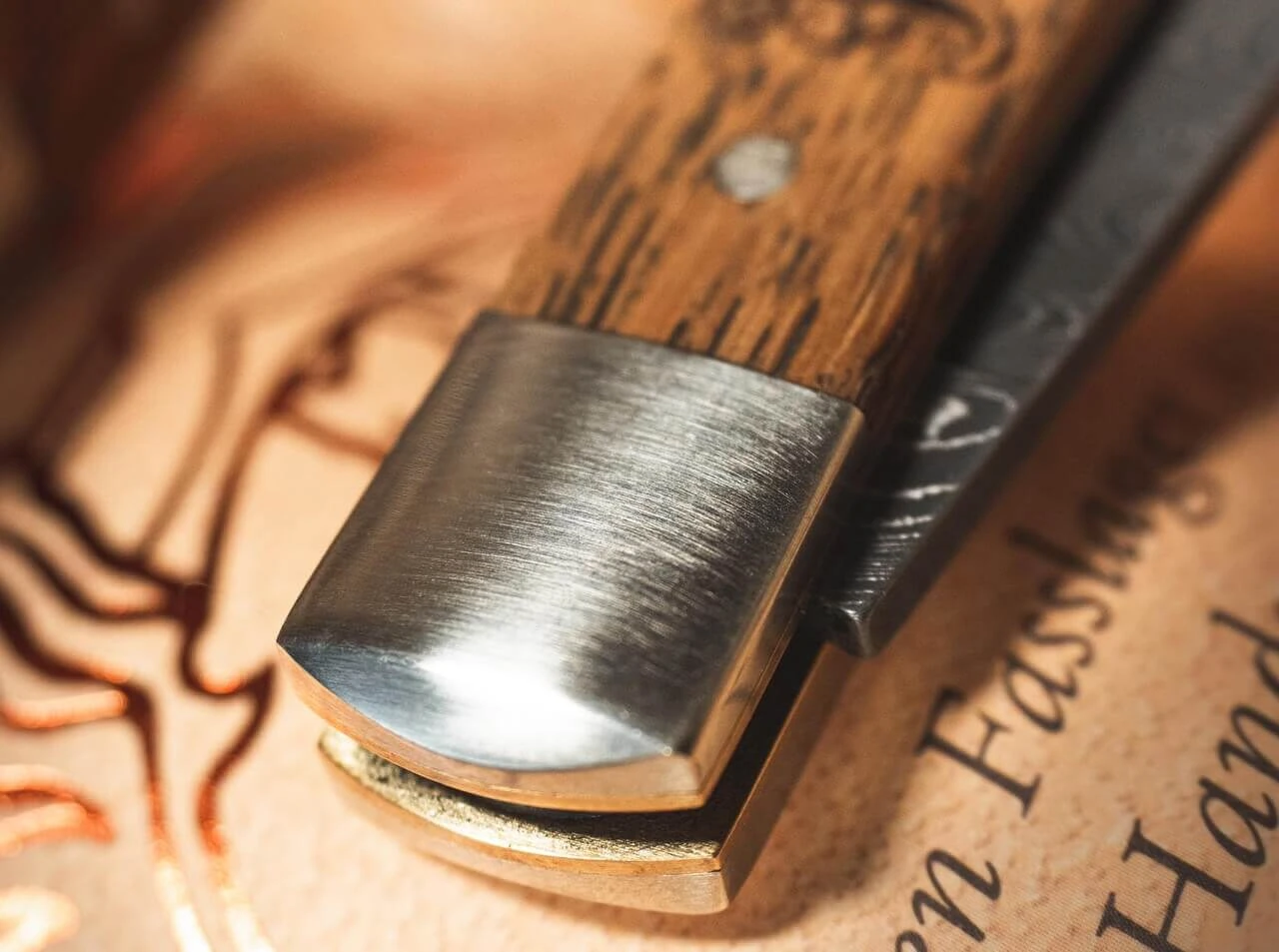 Die edlen Griffschalen des Böker Trapper Asbach Uralt werden aus dem einzigartigen Eichenholz altehrwürdiger Asbachfässer gefertigt, die nach jahrzehntelanger Lagerung nun eine neue Aufgabe übernehmen dürfen. Und genau wie die kleinen Fässer tragen auch die Griffschalen des Slipjoint-Taschenmessers den Brandstempel der berühmten Weinbrennerei. Die edle Sammlerversion ist mit einer Klinge aus rostfreiem Damast von Chad Nichols ausgestattet, der von Hand im Muster Ripple geschmiedet wird. Sie wird per Nagelhau geöffnet und verriegelt nicht. Die charakteristischen Backen bestehen aus Neusilber und bilden einen schönen Kontrast zum geschichtsträchtigen Holz der Schalen. Die schmale Bauweise macht das Trapper zum perfekten Begleiter im Alltag. Handgefertigt in der Böker Manufaktur in Solingen und weltweit streng auf 299 Exemplare limitiert. Mit hochwertigem Filz-Etui zur Aufbewahrung, Echtheitszertifikat und individueller Seriennummer.