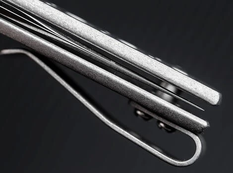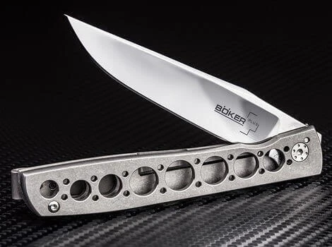 Obwohl wir von Böker im Laufe der Jahre schon viel gesehen haben, schaffen es findige Messermacher immer wieder, auch uns zu überraschen. So zum Beispiel Brad Zinker aus Florida mit seinem Urban Trapper, einem der flachbauendsten Titan-Framelocks, der uns je untergekommen ist. Bei gerade einmal 8 mm Griffdicke (gemessen ohne Clip) ist das Urban Trapper für seine normale Gebrauchsgröße mit dem Begriff „schlank“ nur unzulänglich charakterisiert. Durch die großen Bohrungen und das verwendete Titan ist das Urban Trapper mit gerade einmal 48 Gramm ein echtes Leichtgewicht, das auch in einer Anzughose oder in einer leichten Sommerhose extrem komfortabel zu tragen ist. So minimalistisch das Messer insgesamt ist, so sparsam fällt auch die Größe des Flippers aus. Und dennoch überzeugt er im Einsatz durch hervorragende Funktionalität und öffnet die kugelgelagerte Klinge aus VG-10 zuverlässig. Ein klassisches Trapper-Taschenmesser, in den USA extrem weit verbreitet und von Brad Zinker lange Jahre getragen, gab durch seine Klingenform die Inspiration für dieses außergewöhnliche Stück. Mit hochwertigem Nylon-Etui zur Aufbewahrung.
