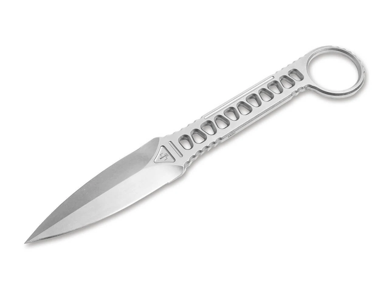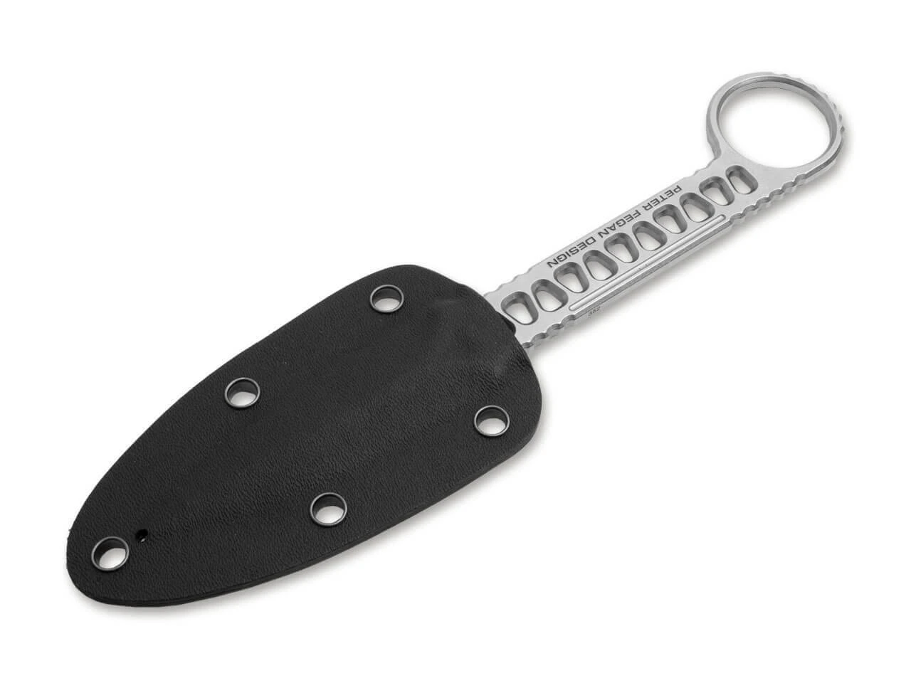 Der leichtgewichtige Böker Plus Voodoo ist mit einer beidseitig abgezogenen Dolchklinge aus 440C ausgestattet und überzeugt als zuverlässiges Einsatzmesser sowohl im Feld als auch im Alltag. Die für Peter Fegan charakteristische Skelettbauweise verleiht dem Messer eine taktische Anmutung und verringert gleichzeitig das Gewicht der robusten Ganzstahlkonstruktion, die mit einem dezenten Stonewash-Finish versehen ist. Der große Griffring gewährleistet im Zusammenspiel mit den ausgeprägten Riffelungen in den relevanten Bereichen ein geradezu spektakuläres Handling. Getragen wird der Dolch in der im Lieferumfang enthaltenen Kydexscheide samt Gürteladapter, wobei die schlanke Bauweise und das geringe Gewicht auch einen Einsatz als großes Neck Knife denkbar machen.
